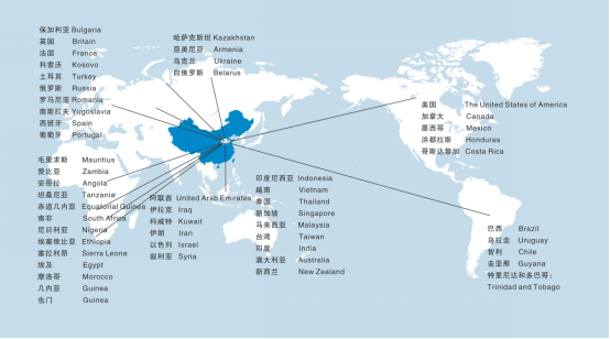 我司设备已销售80多个国家与地区,详细请参见我们的销售区域图。